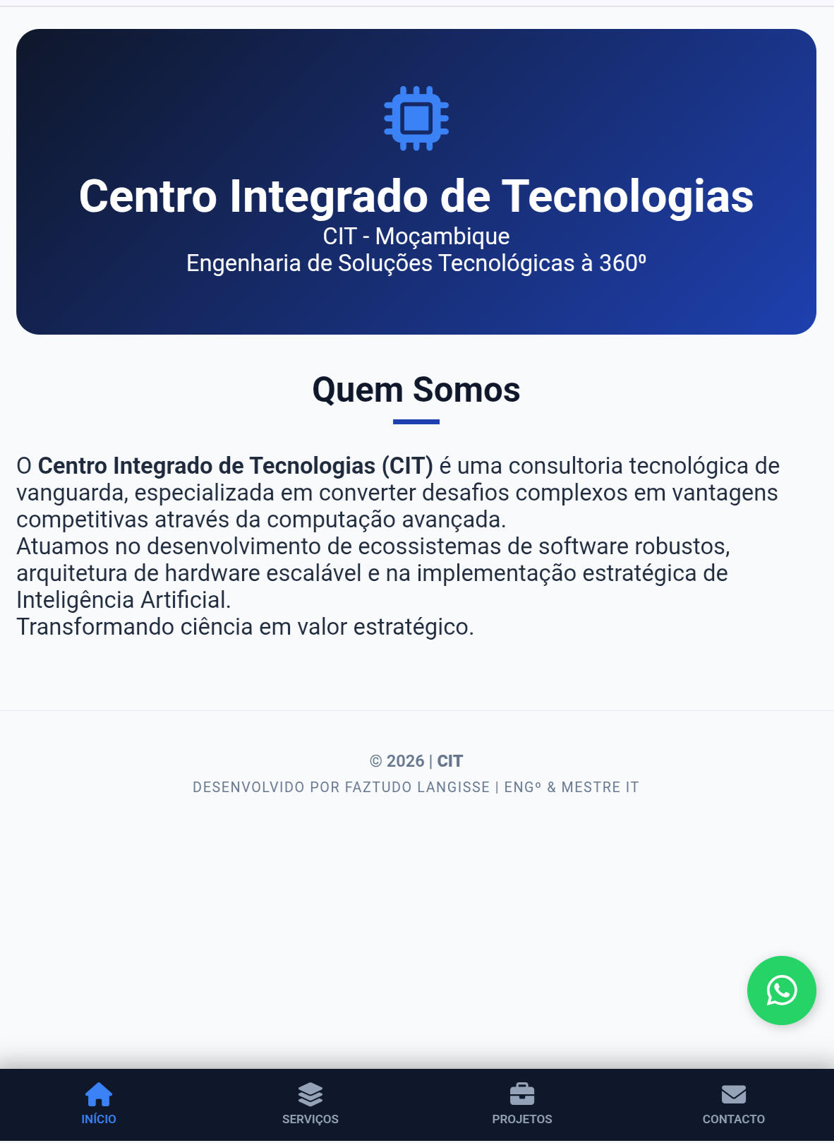 Desenvolvido por: Faztudo Languisse | Engenheiro em Informática e Telecomunicações | Mestre em TICs | Cidade de Tete